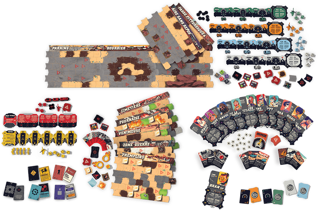 Cette nouvelle version propose de passionnants ajout : Des jetons de danger aléatoire, des jetons Dégât ! Vous aurez également plus de choix à votre tour en attribuant l’un de vos dés à votre tableau de commande pour réparer les dégâts, utiliser la nitro ou envoyer votre hélicoptère pour tirer.