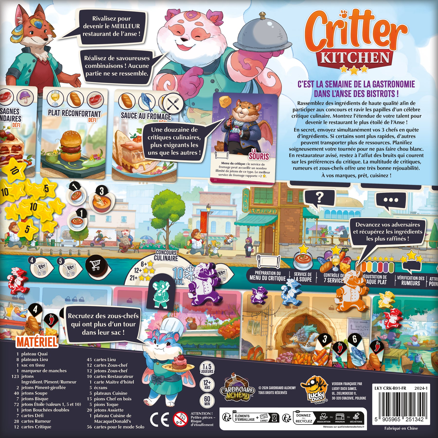 Critter Kitchen est un jeu dans lequel les joueurs décident secrètement où envoyer leurs 3 différents Chefs (travailleurs) dans le but de rassembler les meilleurs ingrédients plus rapidement que leurs concurrents.