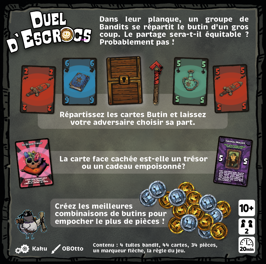 Tentez de récupérer plus de trésors que votre adversaire dans ce jeu à deux où le bluff et la ruse seront de mise !