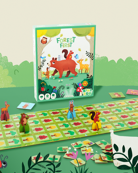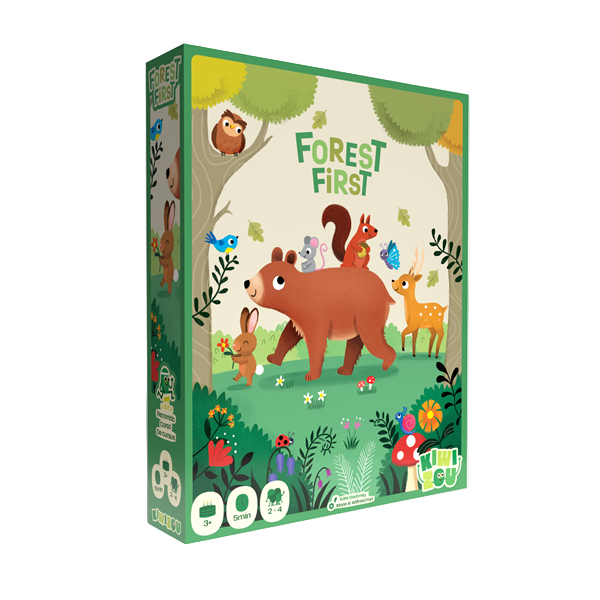 Dans Forest First les joueurs incarnent des animaux de la forêt et font la course : le premier qui atteint le bout de sa ligne remporte la partie. Pour se déplacer pas besoin de manipuler un dé ou de compter des cases, les déplacements se font grâce à un système de couleur : la tuile tirée indique sur quel arbre avancer.