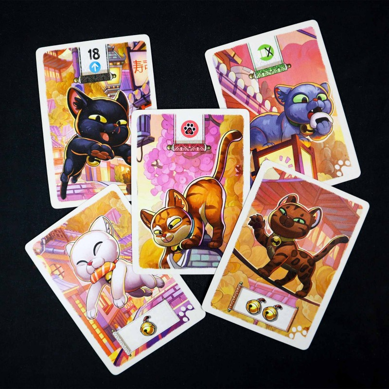 Gangs of Kyoto est un jeu familial idéal, aux règles simples et à l'ambiance explosive ! Le but du jeu est simple, être le premier à avoir banqué 13 grelots avant les autres. Les cartes du jeu représentent des grelots, des petits pouvoirs malins ou rien du tout. Elles ont également toutes une valeur chiffrée comprise entre 0 et 5. Dans ce jeu vous tirez des cartes une à une et les attribuez aux joueurs en espérant pouvoir faire "sauter" un autre joueur et "banquer" vos cartes. Un black Jack familial magnifiquement illustré par Jérémie Fleury, dans l'univers du jeu Kyoto No Neko. Gangs Of Kyoto est la réédition de Danger 13 paru chez Ravensburger.