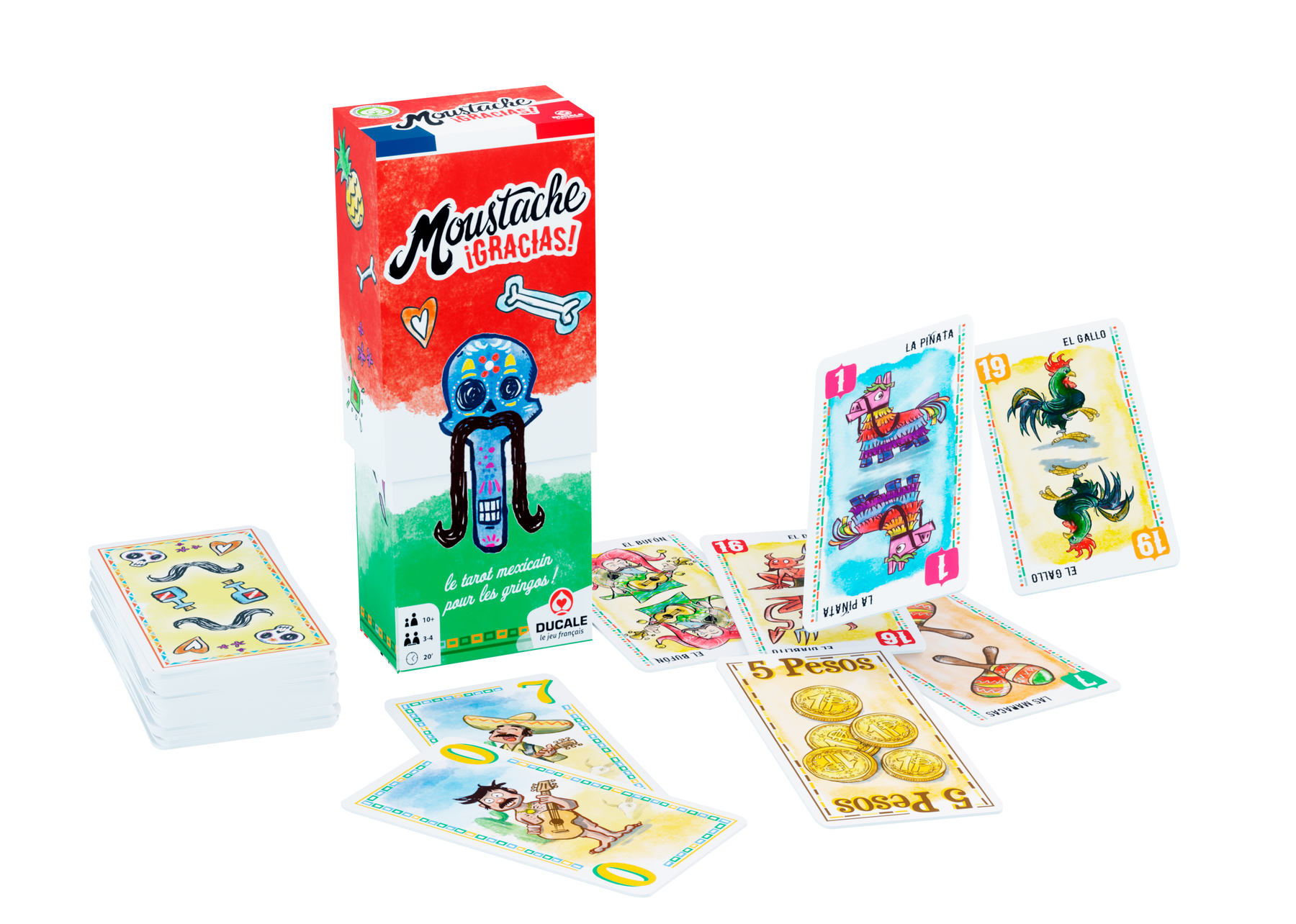 Moustache Gracias est un jeu de tarot Mexicain revisité, idéal pour toute la famille et plein d'humour!