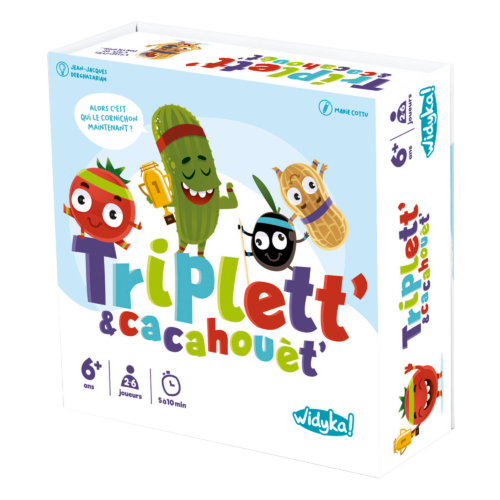 Retrouvez Cornichonchon, Tomato Cerise, Rig’Olive et Cacachouette dans une partie de folie ! Après la compétition, tous grimpent sur le podium…Découvrez le classement ! Trouvez le personnage qui est, à la fois, sur les marches 1, 2 et 3 des podiums des 3 cartes. Le plus rapide gagne le tas de cartes du personnage situé en marche 1. Soyez attentif et remportez le maximum de cartes pour gagner la partie !