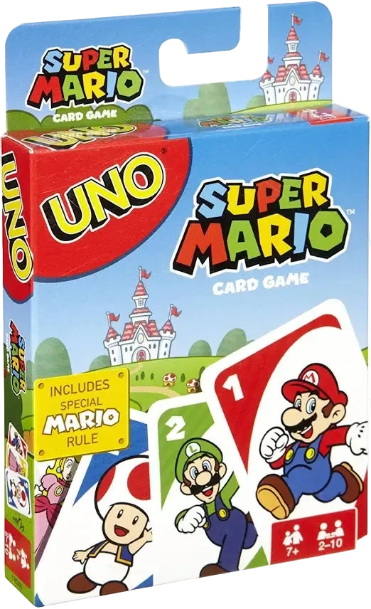 Découvrez pourquoi ce jeu de cartes avec codes de couleur est un jeu familial si populaire. Édition spéciale UNO Super Mario Bros, contenant une carte action inédite ainsi que des cartes à personnaliser avec vos propres règles.