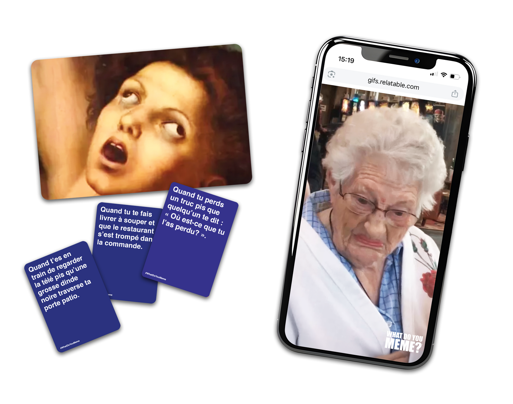 Dans What Do You Meme? - GIF Édition Québécoise, tu combines des cartes Situation hilarantes avec des photos… ou des GIFs ajoutés directement depuis ton téléphone. Résultat : des memes encore plus absurdes, plus punchés et impossibles à oublier.