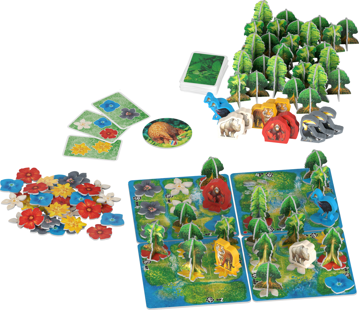 À la fin de la partie, le joueur qui a fait pousser la meilleure forêt tropicale et attiré le plus d'animaux marquera le plus de points et gagnera.