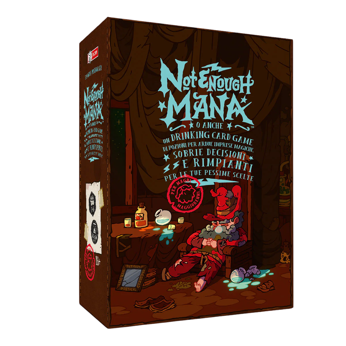 Not Enough Mana is a 'potion' drinking card game for 3-6 fearless wizards You’ll be destroying each other using epic spells, curses and artifacts while replenishing your mana by drinking magical potions. In your turn, you draw cards and manage your hand, deciding which cards to use and which to sacrifice to empower other cards. You can drink mana potions at any point in the game to gain mana points. Using these points, you destroy your fellow wizards with fireballs, lightning bolts and other epic spells. Global event cards, unpredictable curses and powerful artifacts, as well as the necessity to balance your mana flow, constantly stir the balance of power and turn the tides on the battlefield. Your goal is to eliminate all other wizards from the game, either by depleting all their health points or by K.O., also known as Too Much Mana. The last wizard on the battlefield wins!